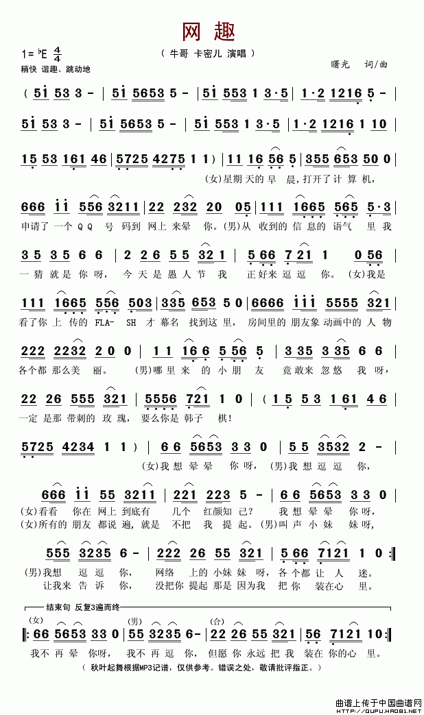 (男)叫声小妹妹呀,(女)(哼,不理你了)