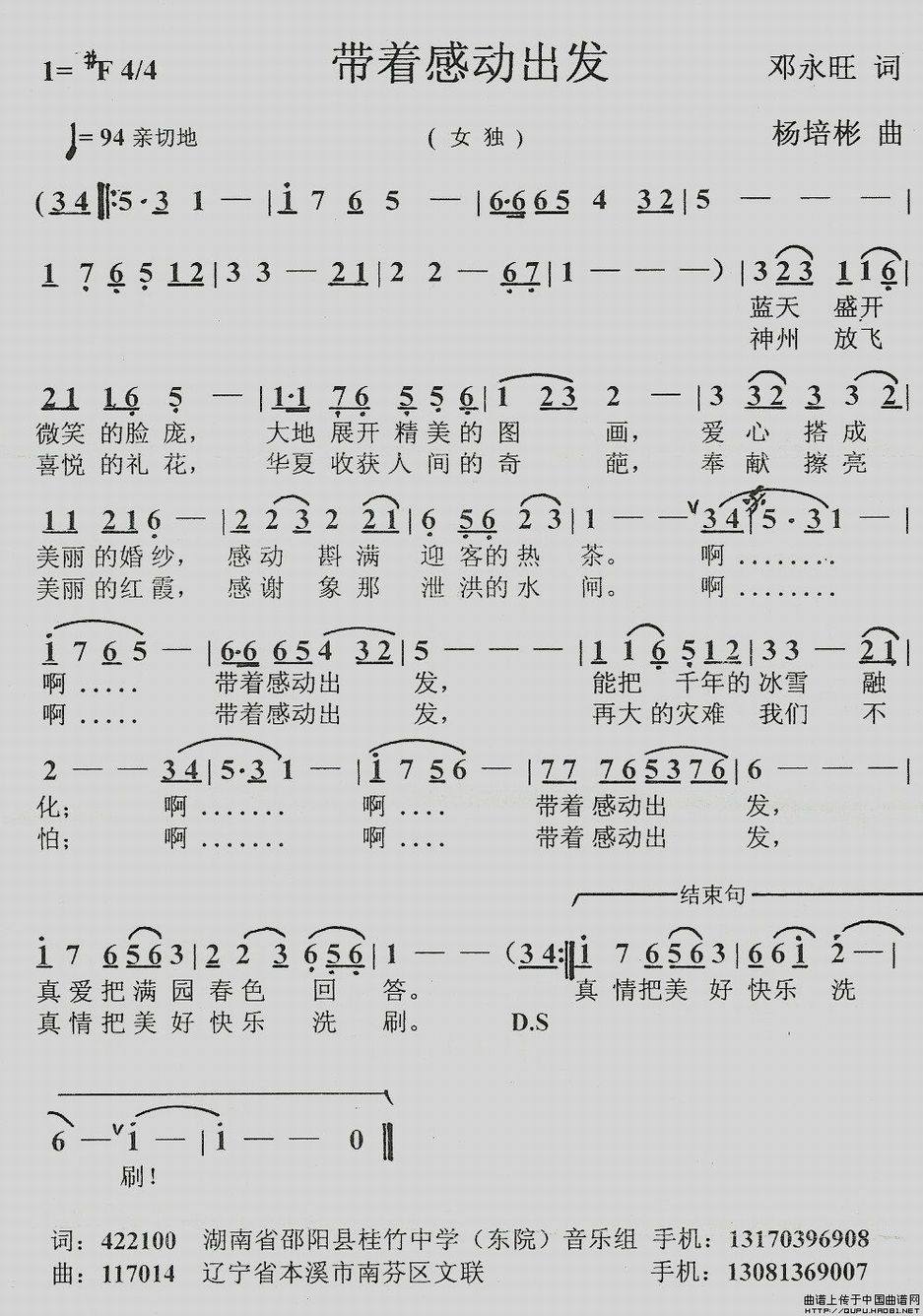 带着感动出发-邓永旺词 杨培彬曲(简谱)