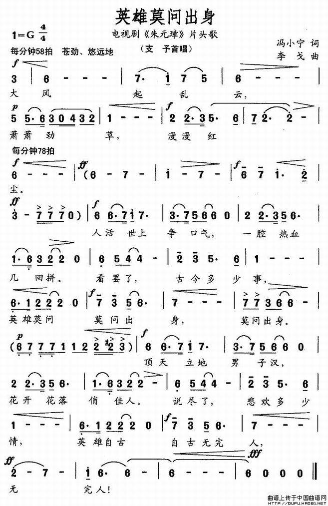 英雄莫问出身-支予(《朱元璋》片头曲简谱)