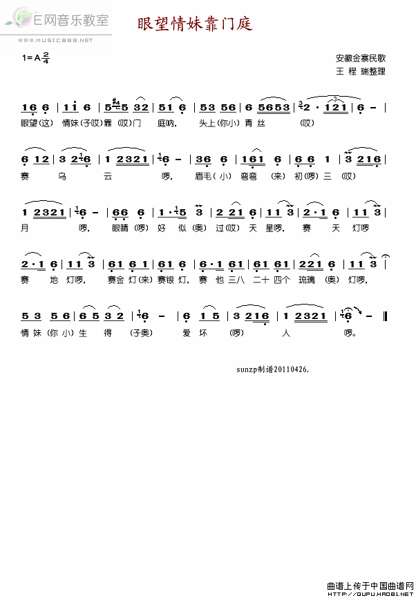 >> 眼望情妹靠门庭-朱逢博(简谱)