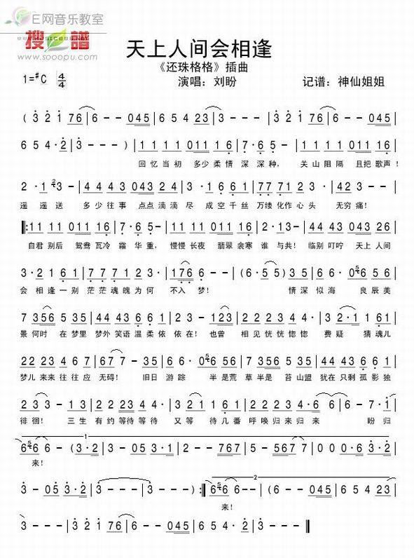 >> 天上人间会相逢-刘盼(《还珠格格》插曲简谱)