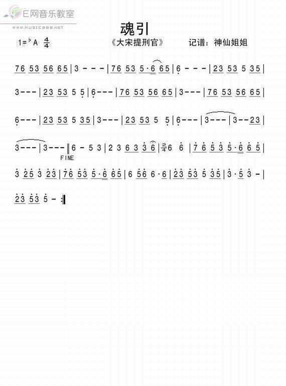 >> 魂引-《大宋提刑官》原声音乐(旋律简谱)