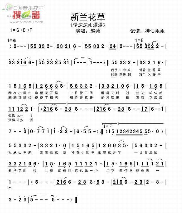 >> 新兰花草-赵薇(《情深深雨濛濛》插曲简谱)