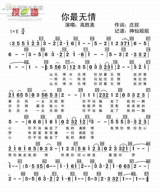 莫让红颜守空枕-高胜美(《雪山飞狐》片尾曲简谱)