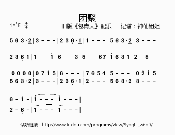 >> 团聚-旧版《包青天》原声音乐(简谱)
