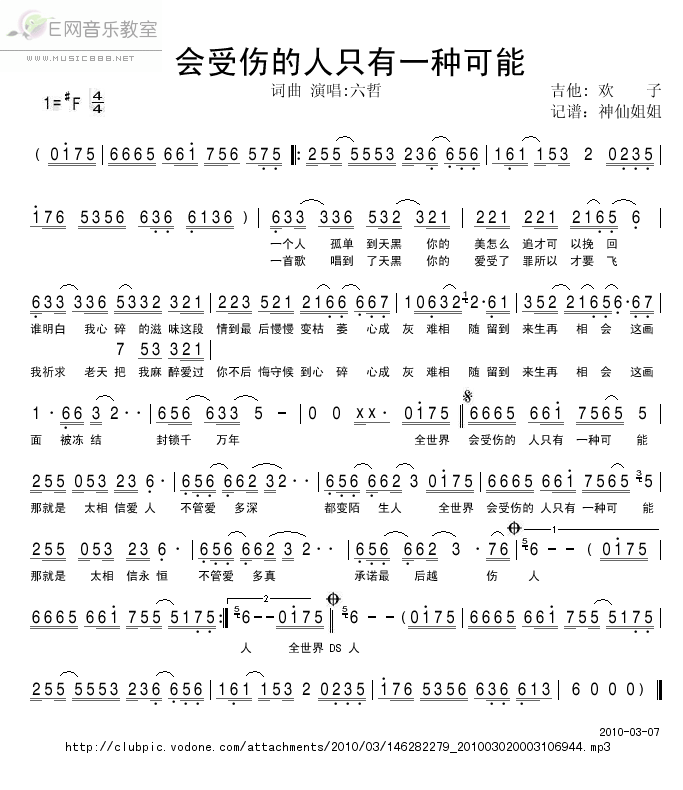 心伤2010——六哲(简谱)