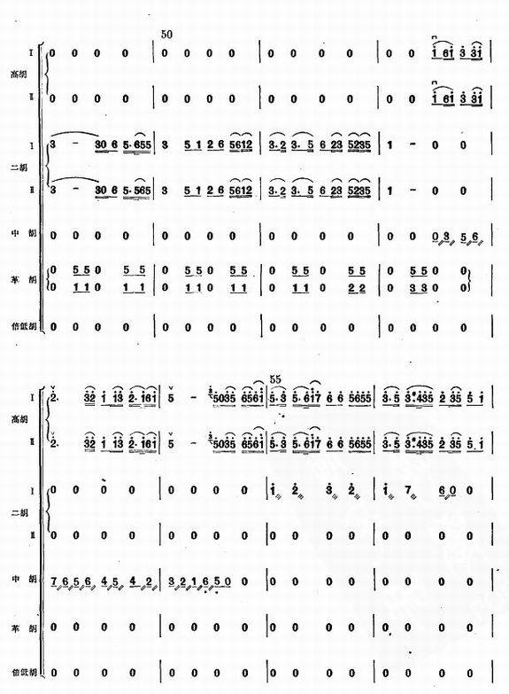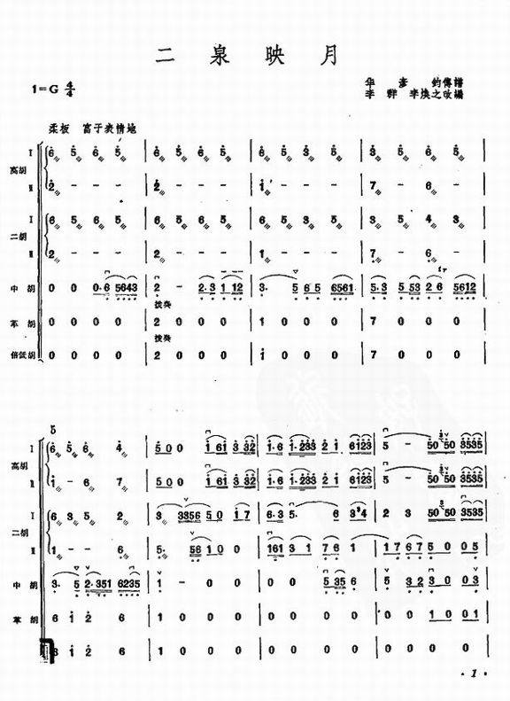 >> 二泉映月-民族乐曲(拉弦乐器总谱_简谱)