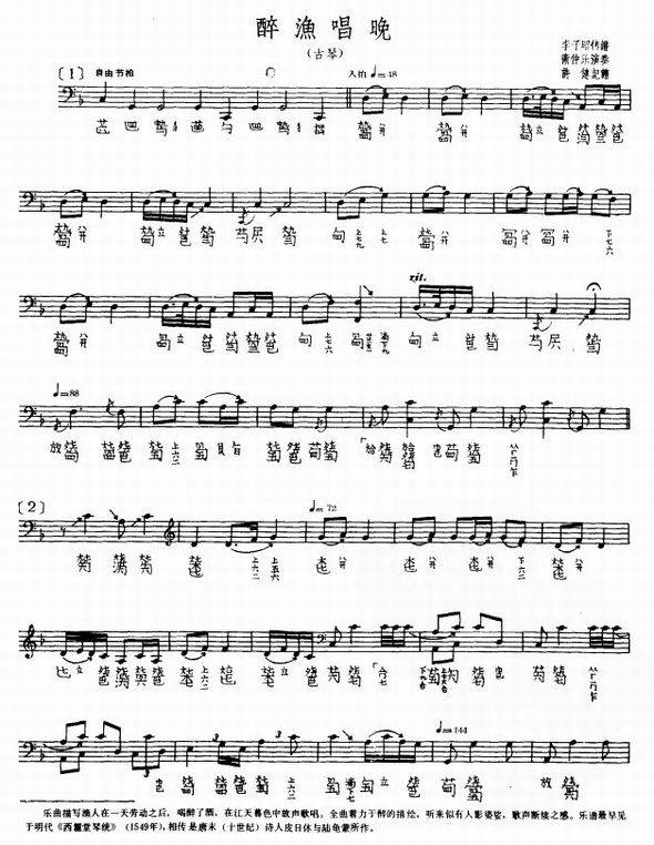 >> 醉渔唱晚-古琴(古琴曲谱_线谱)