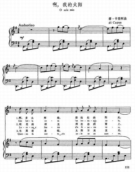 >> 我的太阳-意大利歌曲(钢琴谱_五线谱版本2)
