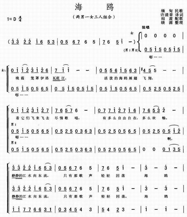 >> 海欧-缅甸民歌(三声部重唱简谱)