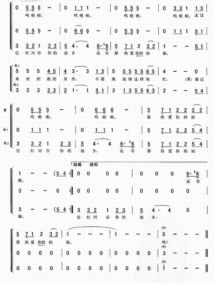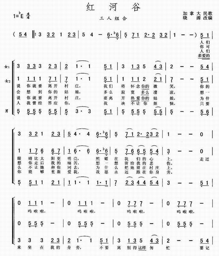 >> 红河谷-加拿大民歌(三重唱简谱)