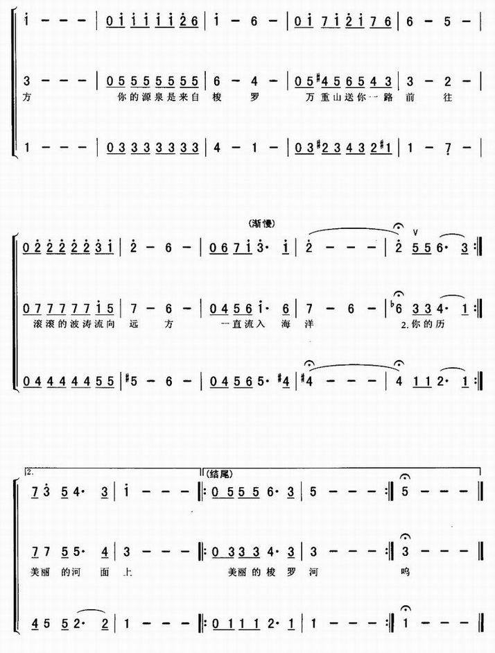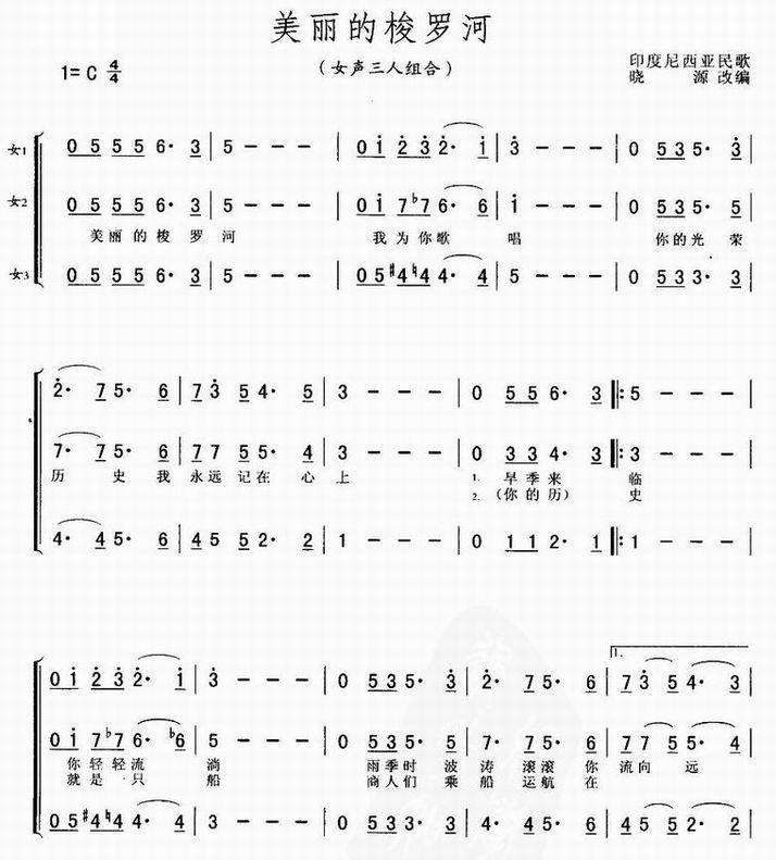 >> 美丽的梭罗河-印度尼西亚民歌(三重唱简谱)