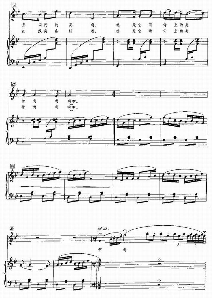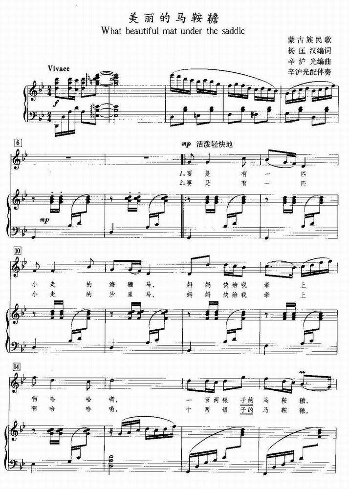 >> 美丽的马鞍韂-蒙古族民歌(钢琴谱_五线谱)
