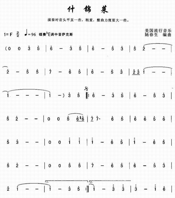 什锦菜-美国流行音乐(bE调中音萨克斯曲谱_简谱)