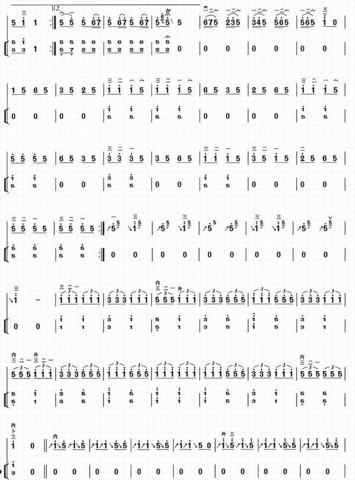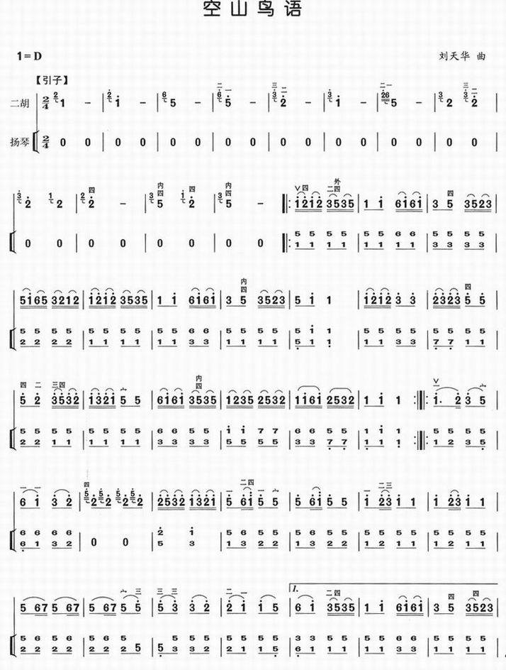 >> 空山鸟语-二胡曲谱(简谱_带扬琴伴奏)