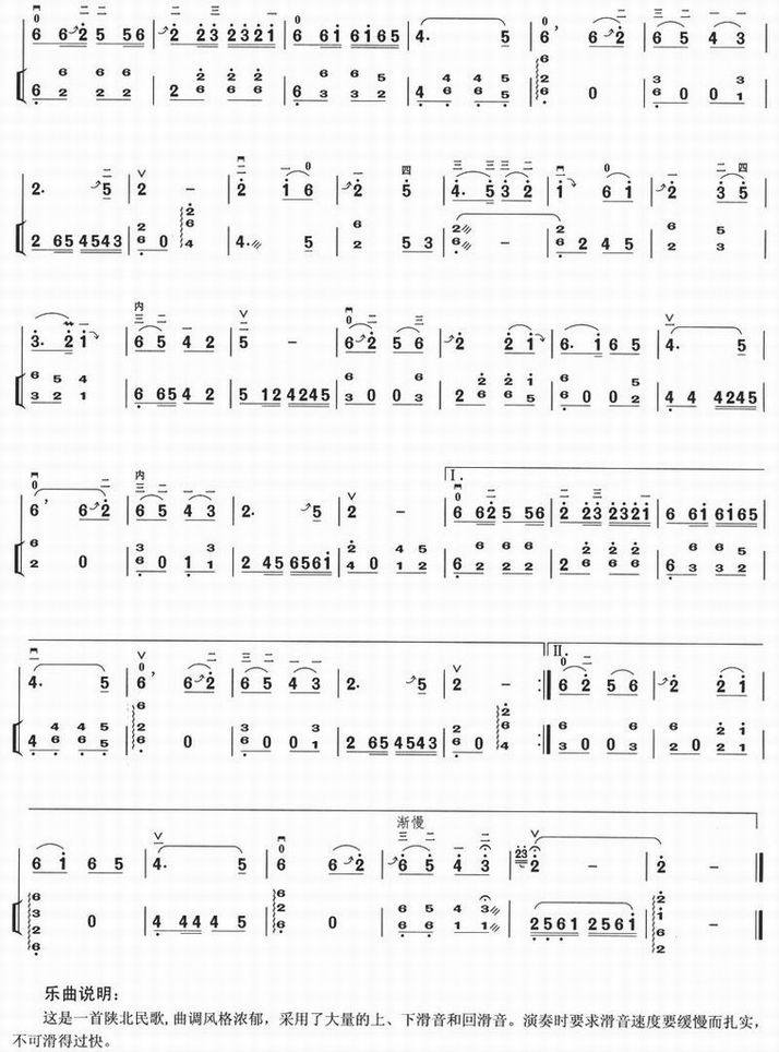 绣金匾-陕北民歌(二胡曲谱_简谱带扬琴伴奏)