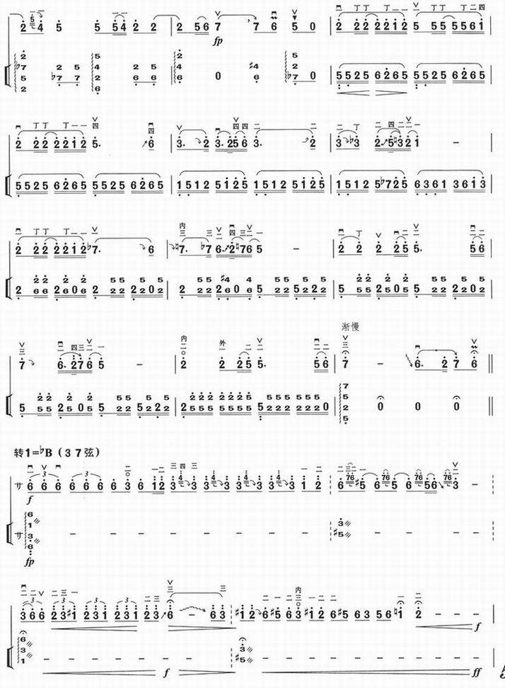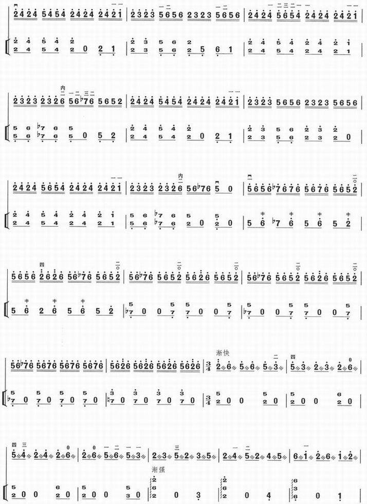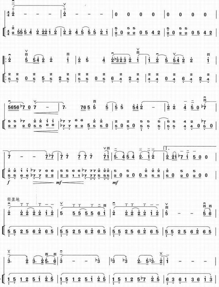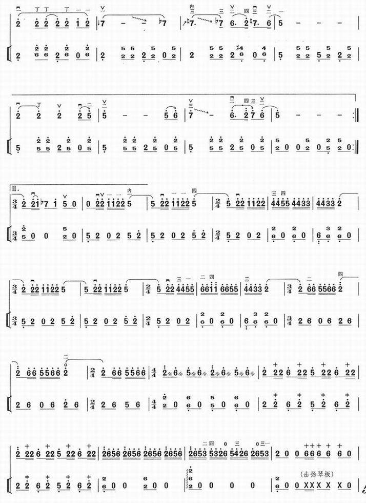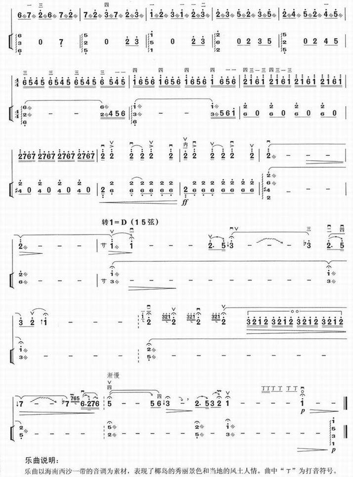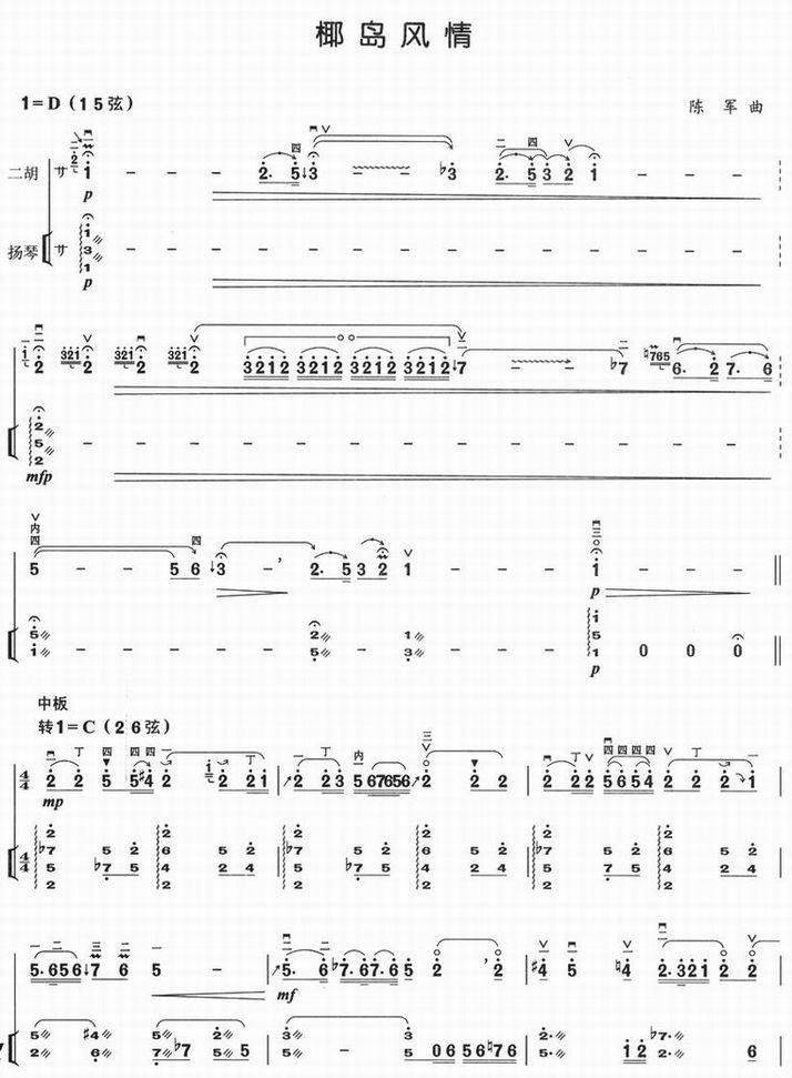 >> 椰岛风情-二胡曲谱(简谱_带扬琴伴奏谱)