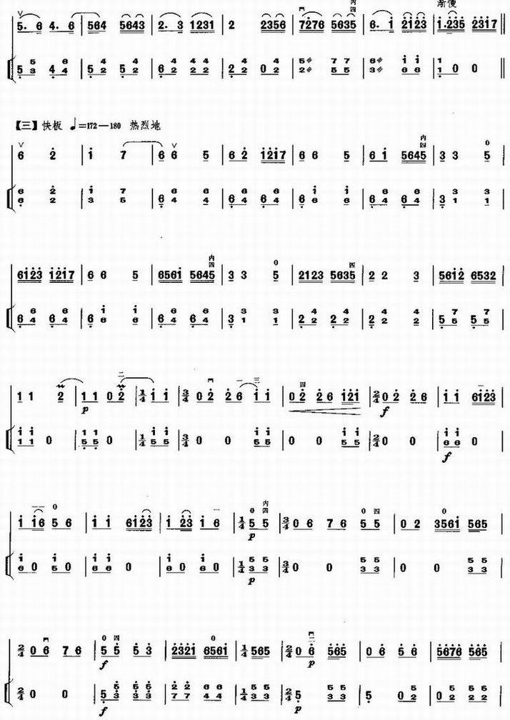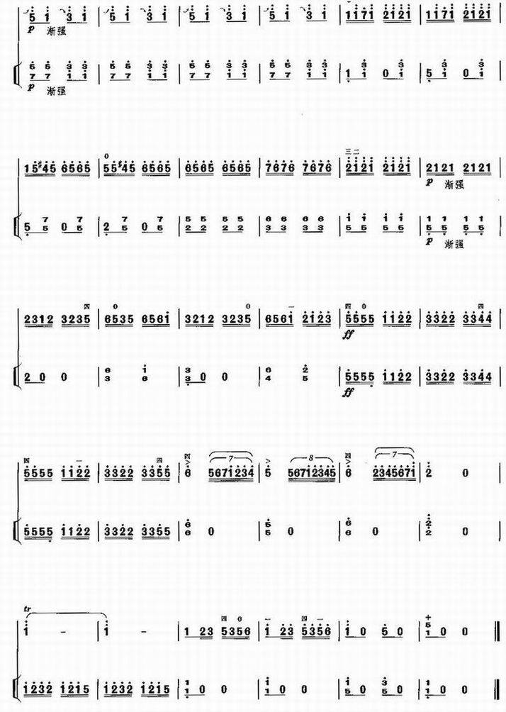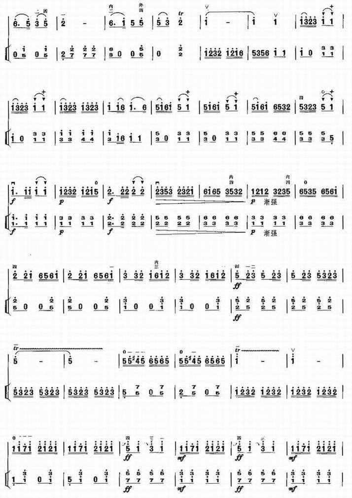 >> 姑苏春晓-二胡曲谱(简谱_带扬琴伴奏谱)