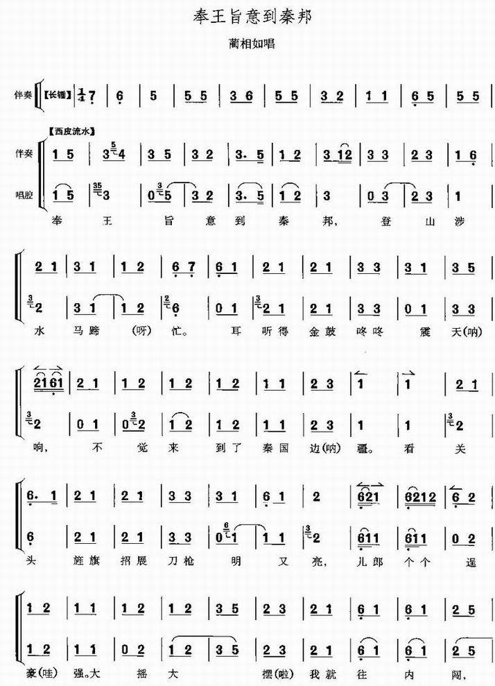 >> 奉王旨意到秦邦-蔺相如唱段(京剧简谱)
