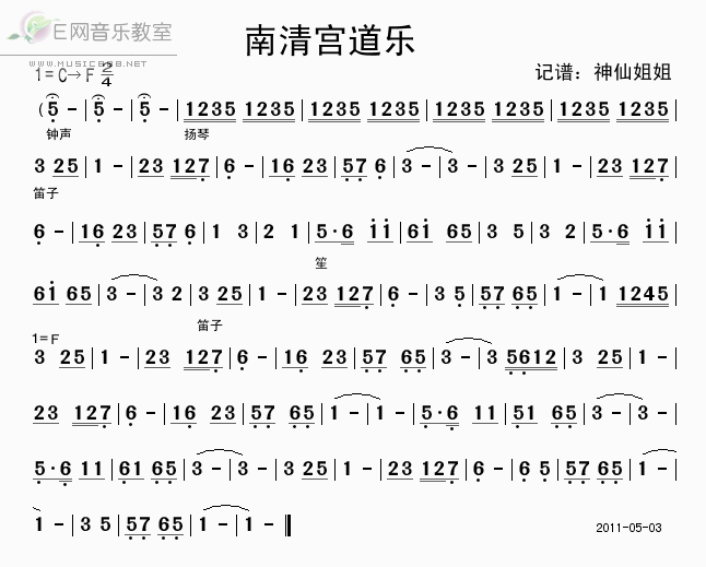 >> 南清宫道乐-原声音乐(旋律简谱)