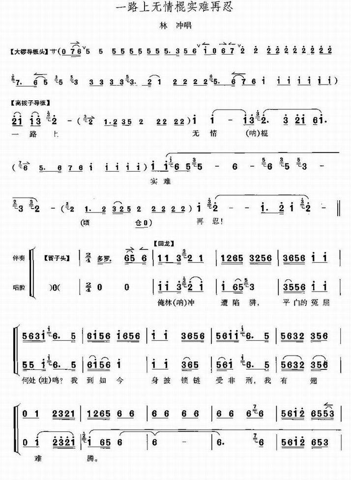 >> 一路上无情棍实难再忍-林冲唱段(京剧简谱)