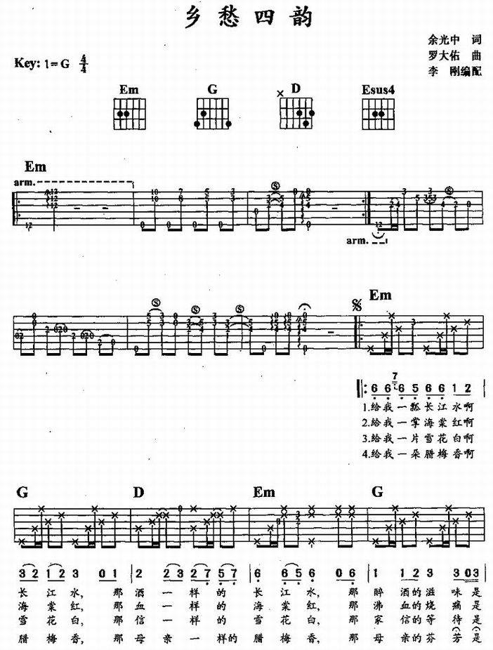 乡愁四韵-罗大佑(吉他谱)