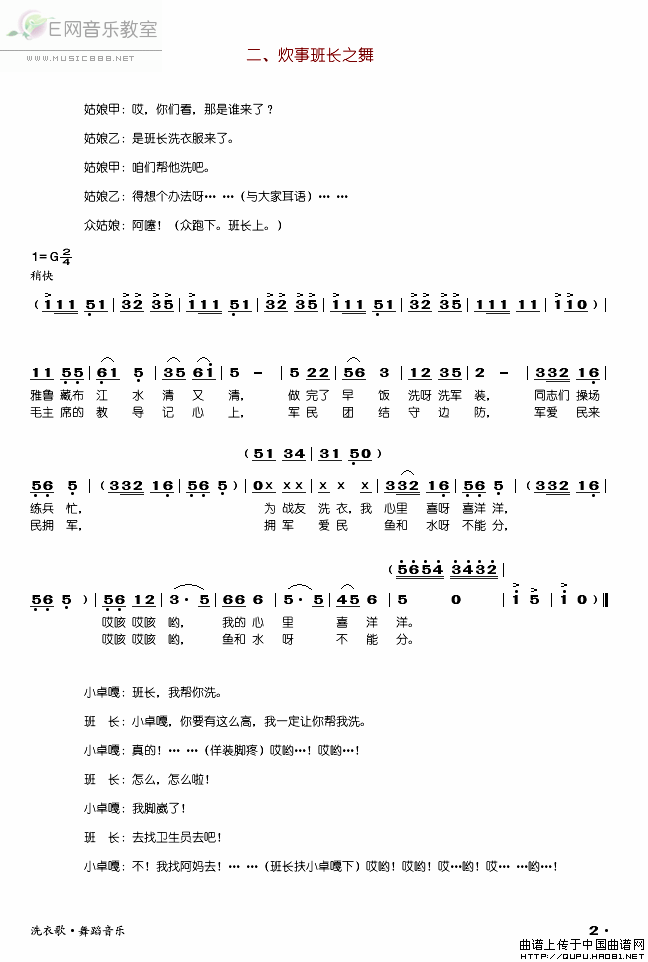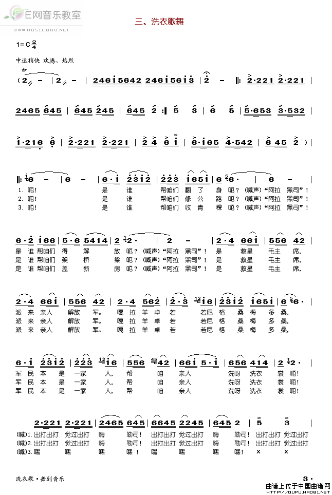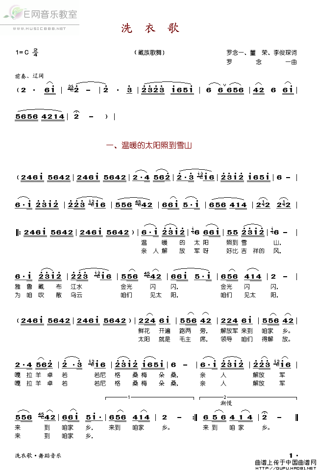 >> 洗衣歌-藏族歌舞(完整版简谱)