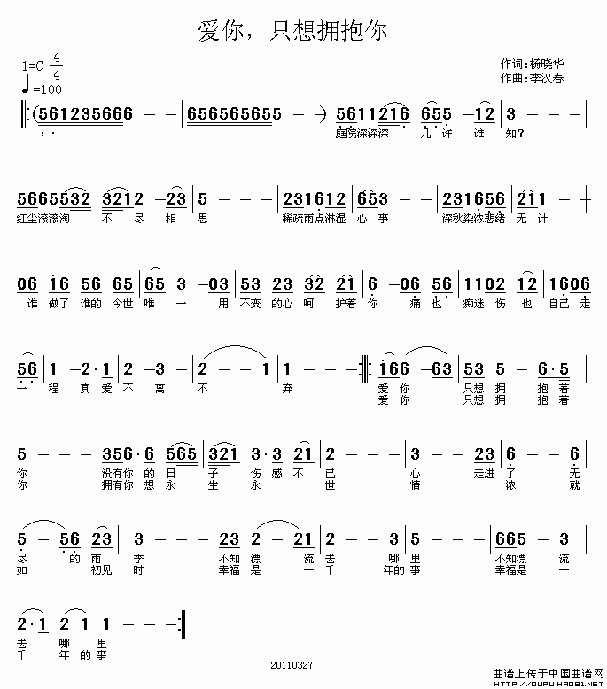 >> 爱你,只想拥抱你-原创歌曲(简谱)