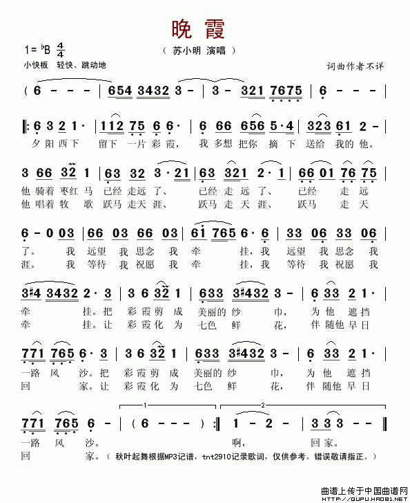 晚霞 歌词: