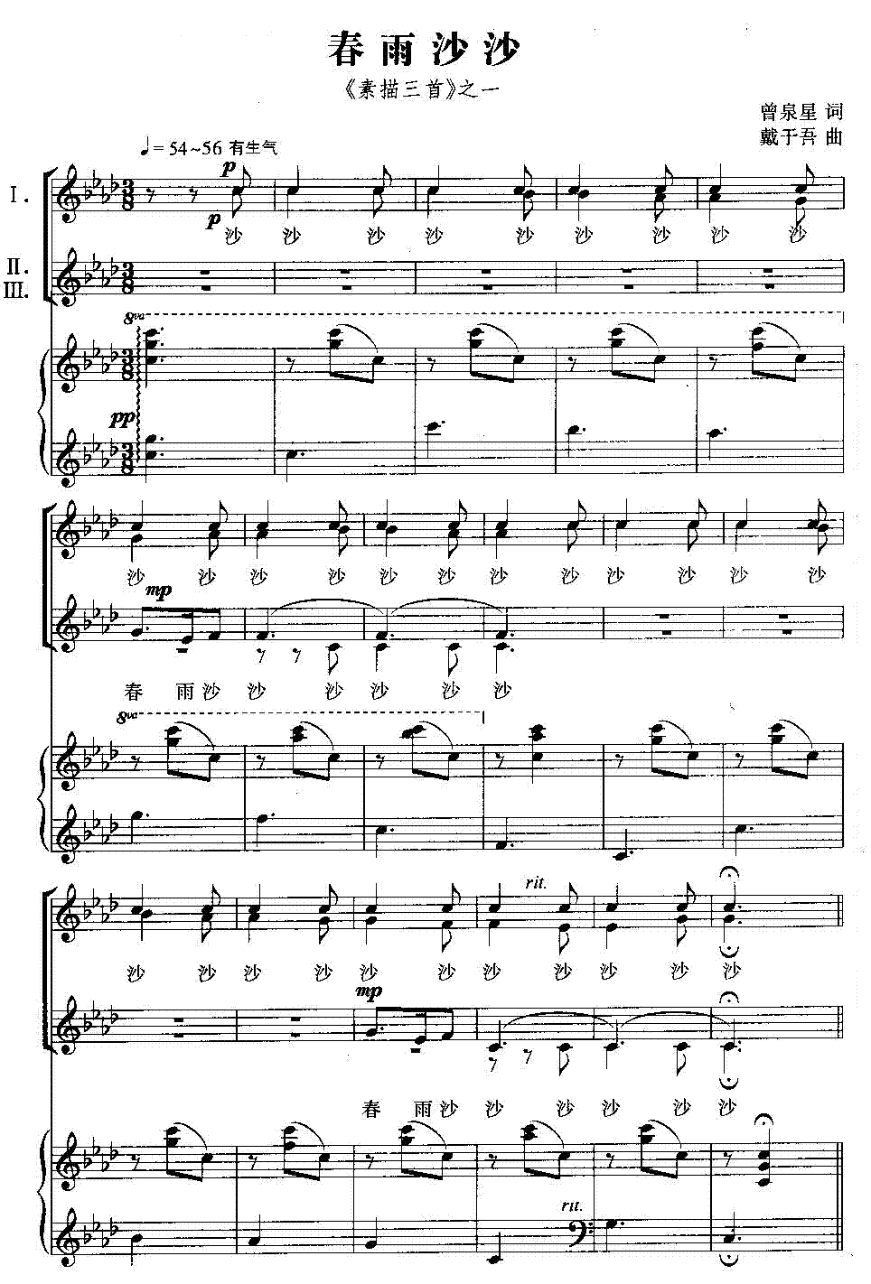 >> 春雨沙沙-合唱线谱