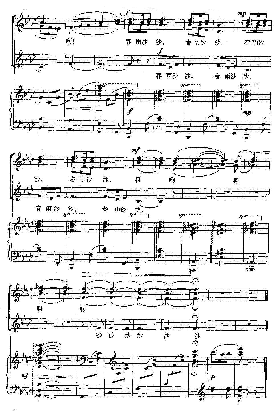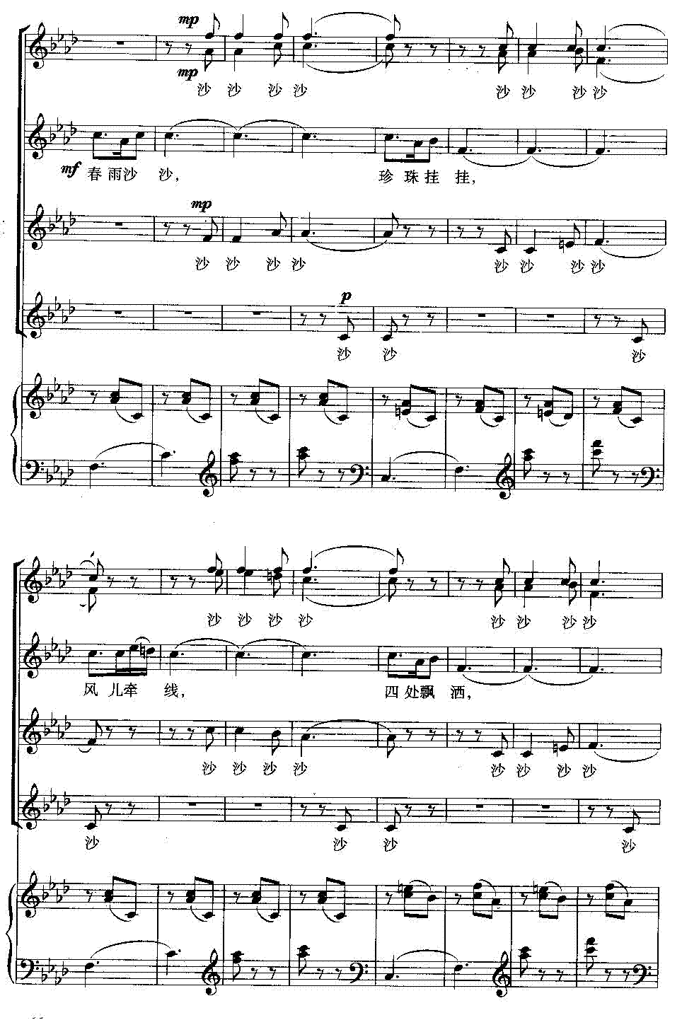春雨沙沙-合唱线谱
