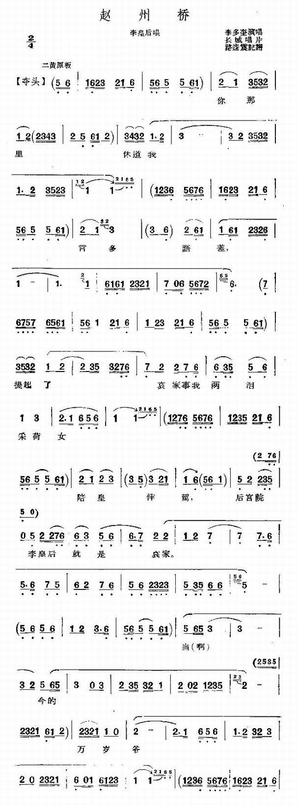 >> 赵州桥-李皇后唱段(京剧简谱)