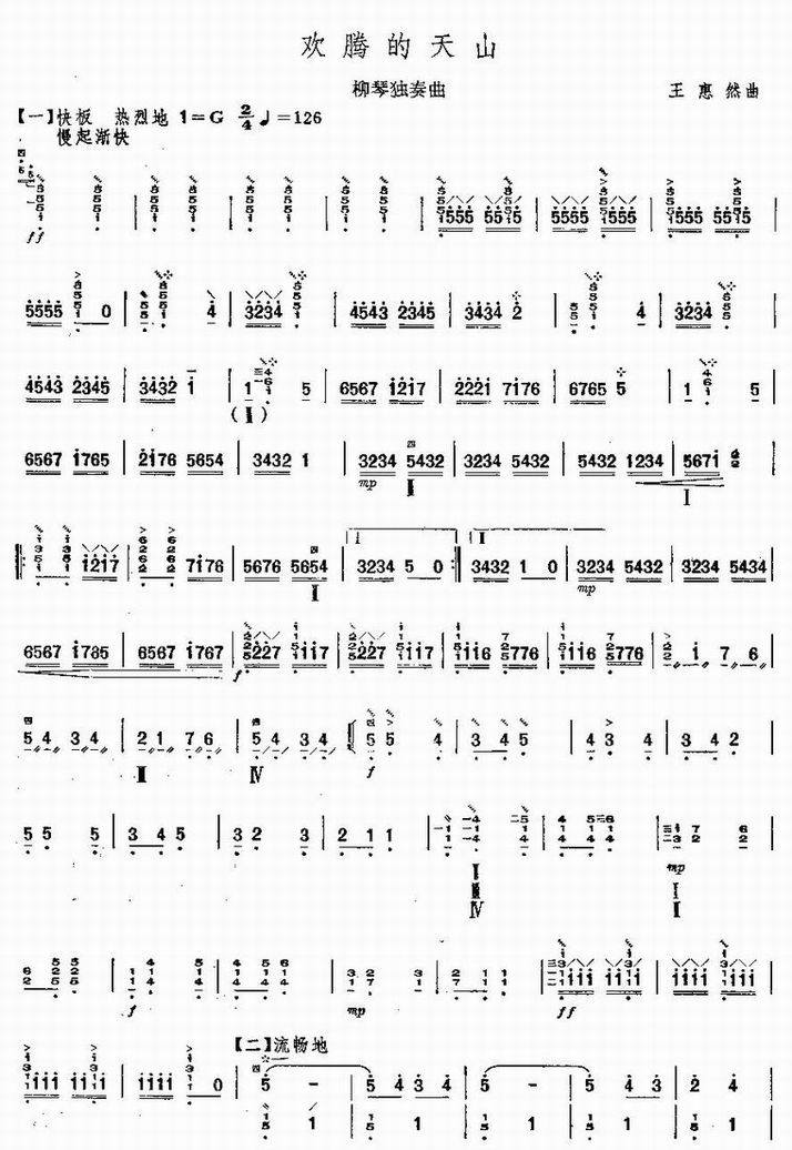 >> 欢腾的天山-柳琴独奏(柳琴曲谱_简谱)
