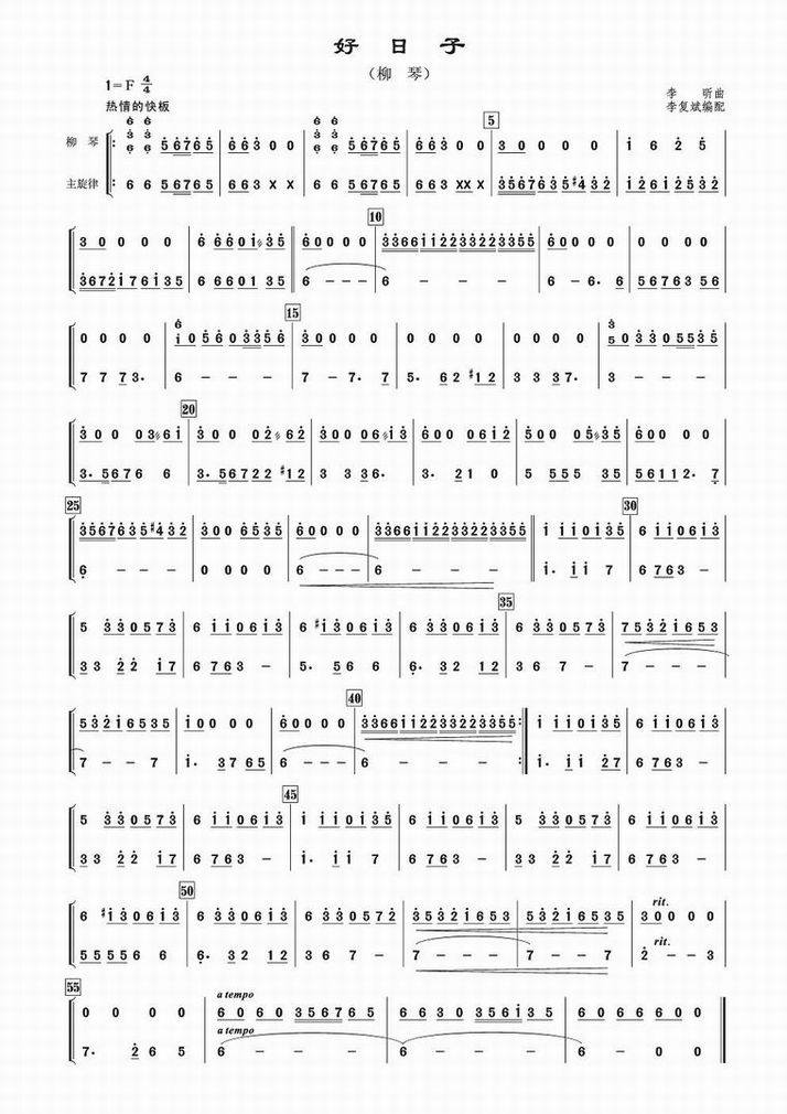 >> 好日子(柳琴分谱)