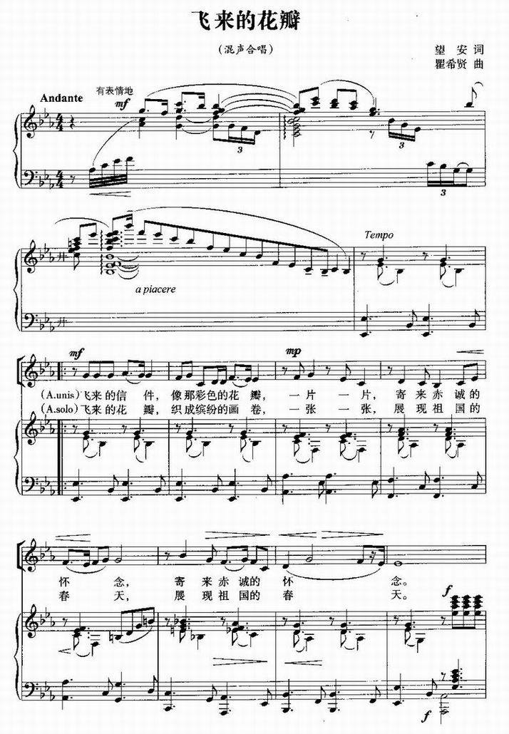 >> 飞来的花瓣-混声合唱(合唱线谱)
