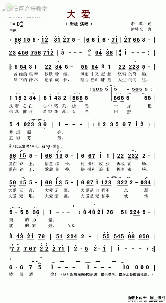 >> 大爱-衡越(简谱)