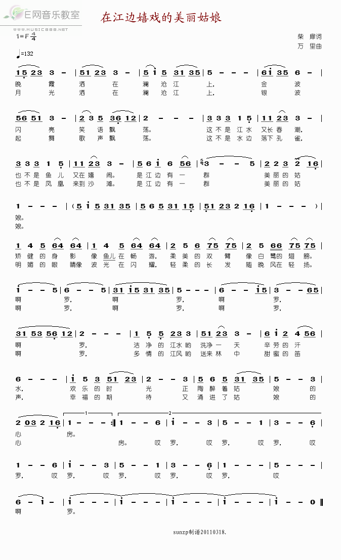 >> 在江边嬉戏的美丽姑娘-杨小燕等(简谱)