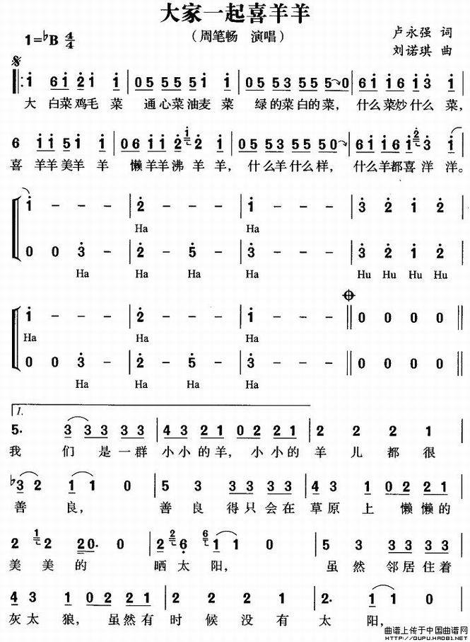 >> 大家一起喜羊羊-周笔畅(简谱)
