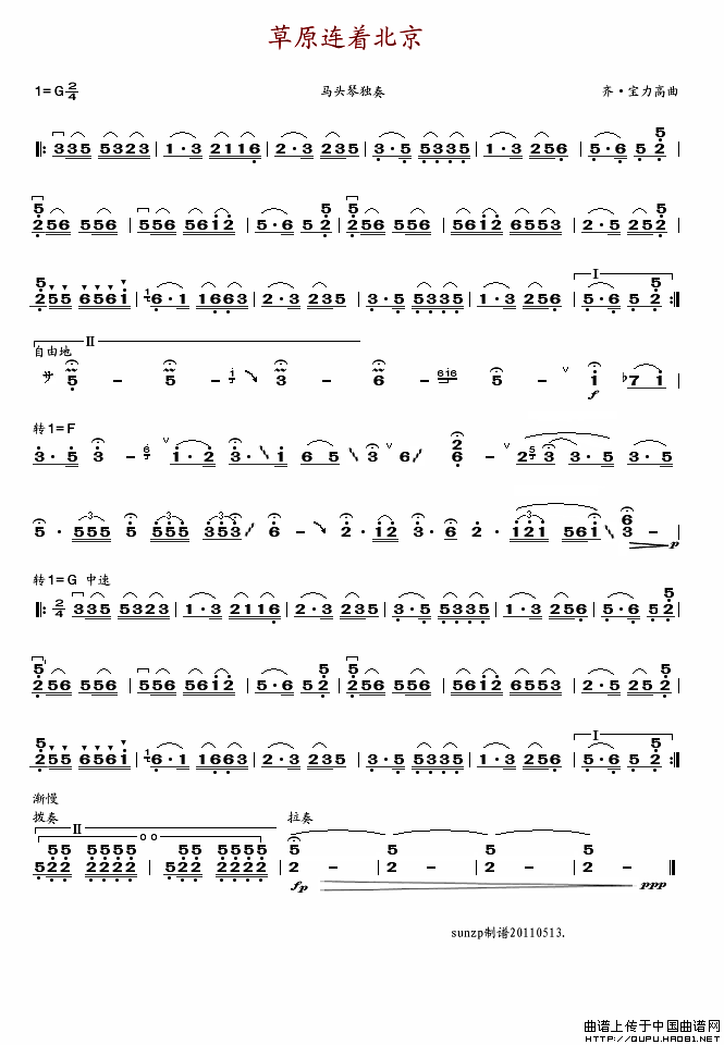 草原连着北京-大提琴(五线谱_带伴奏谱)
