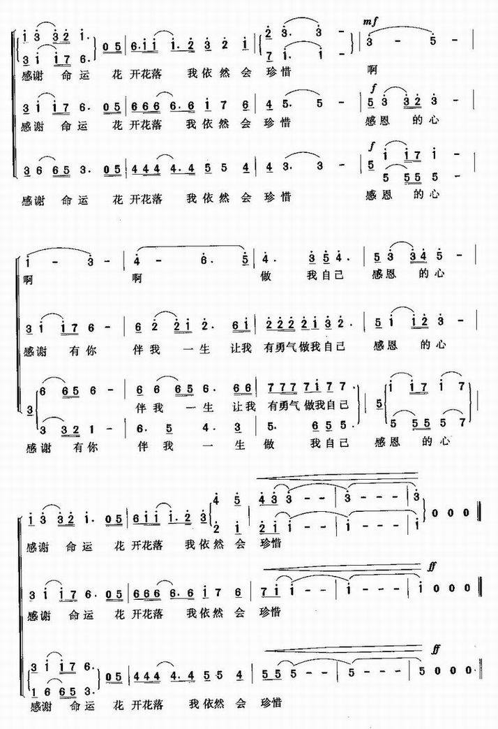 你可见过秋天的山岭-女声领唱 合唱(合唱简谱)