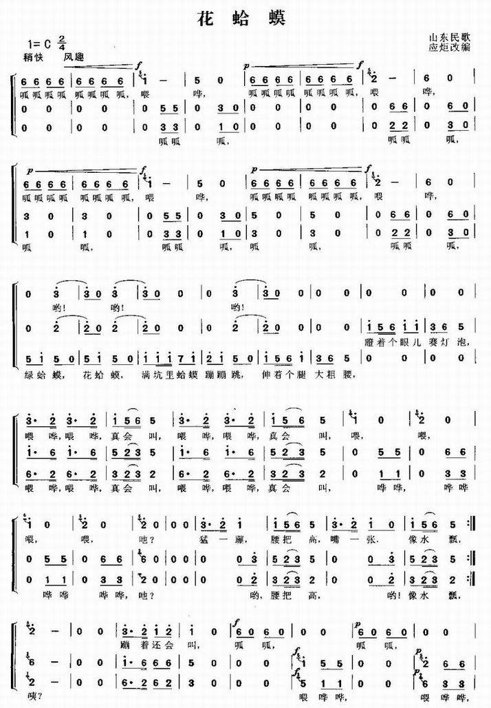 >> 花蛤蟆-山东民歌(合唱简谱)
