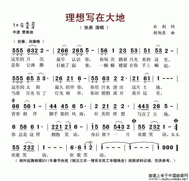 2011年春节中央电视台《倾注三农——情系农民工专题晚会》歌曲。
