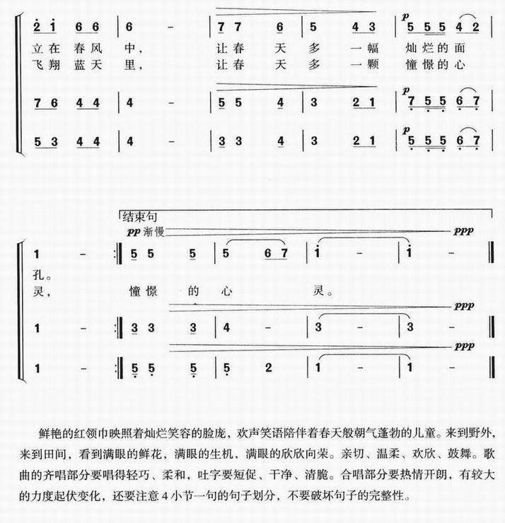 >> 春天的红领巾-童声齐唱、三部合唱(合唱简谱)