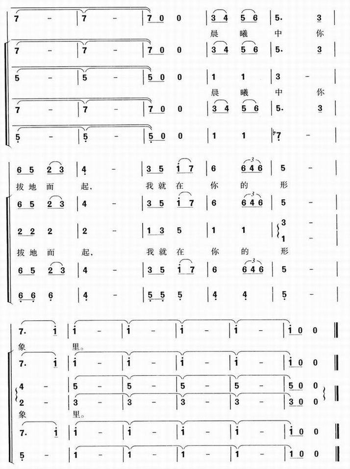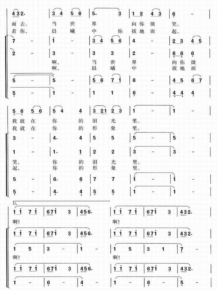 我的祖国-领唱 混声四部合唱(合唱简谱)