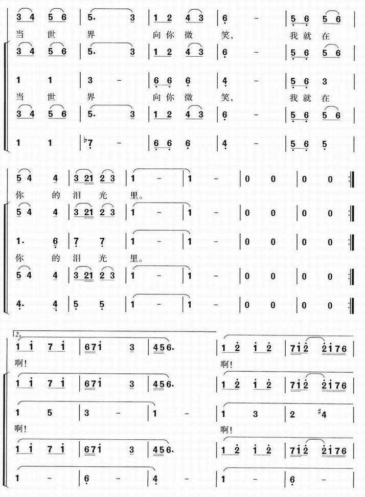亲爱的人-爱尔兰民歌(四部合唱_线谱)