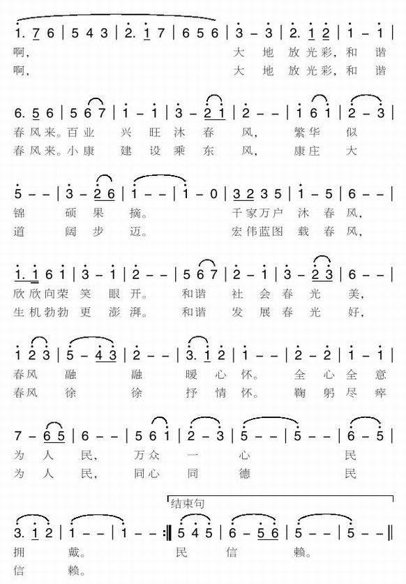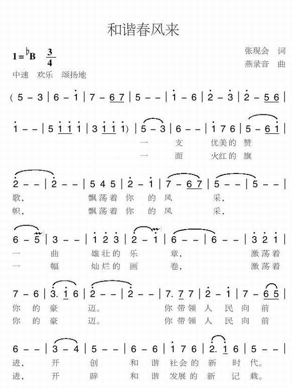 >> 和谐春风来-张现会词 燕录音曲(简谱)