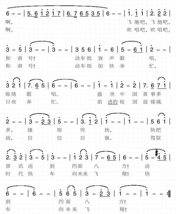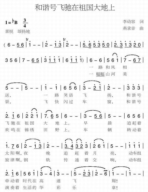>> 和谐号飞驰在祖国大地上-李幼容词 燕录音曲(简谱)