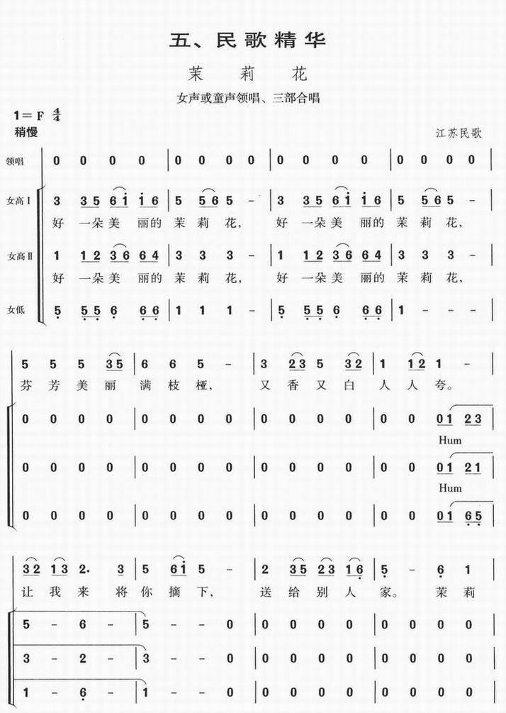 >> 茉莉花-江苏民歌(三部合唱简谱)