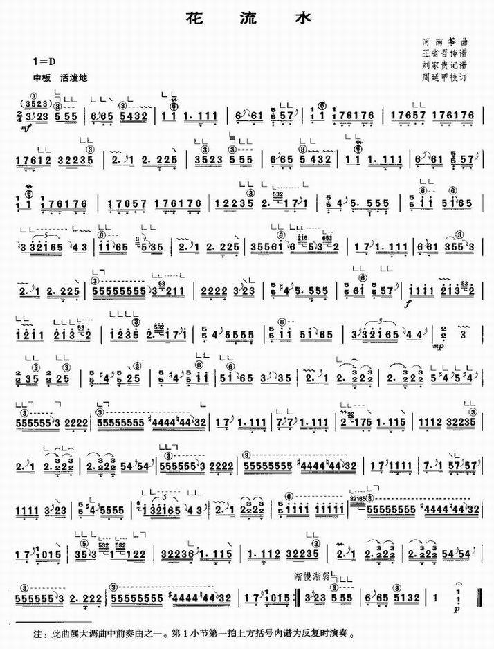 >> 花流水-古筝曲谱(简谱)