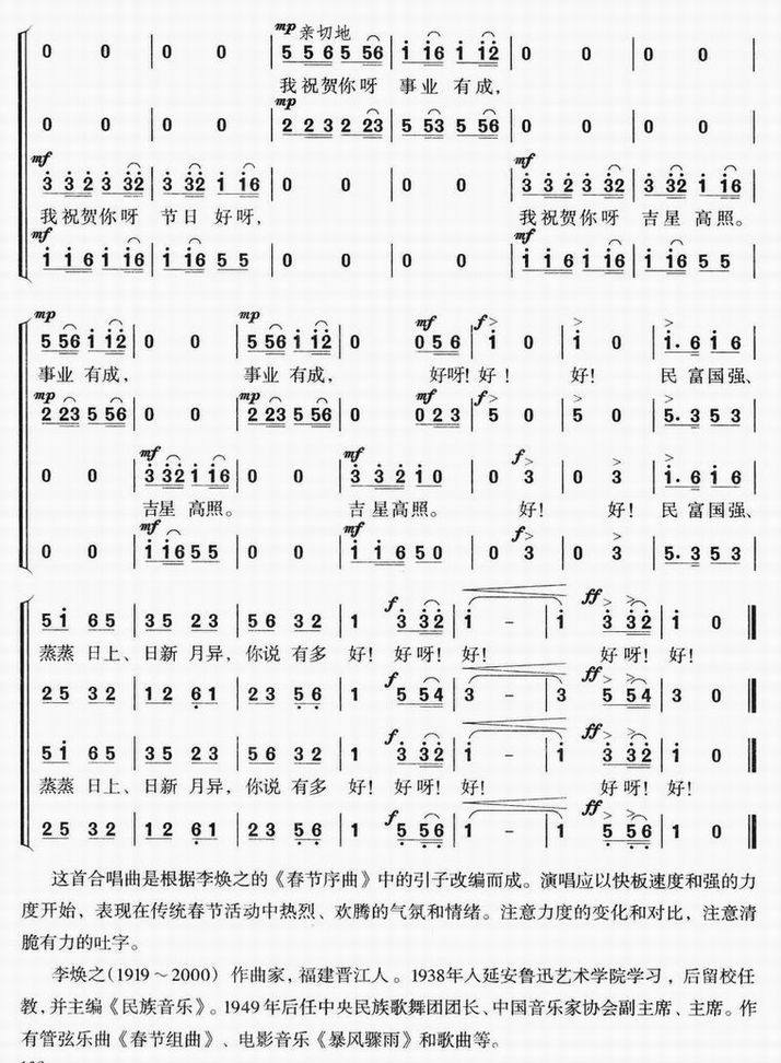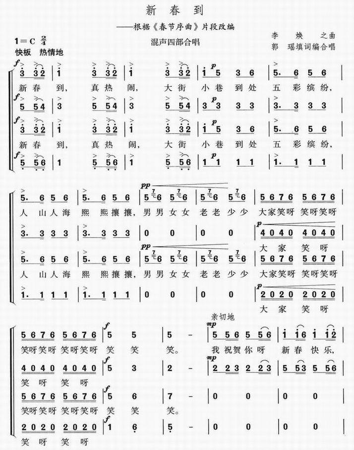 这首合唱曲是根据李焕之的《春节序曲》中的引子改编而成。